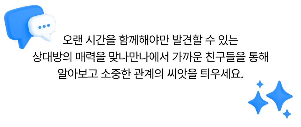 프로필로 확인하는 신뢰도를 바탕으로상대에 대해 알아보는 특별한 경험을 해요.